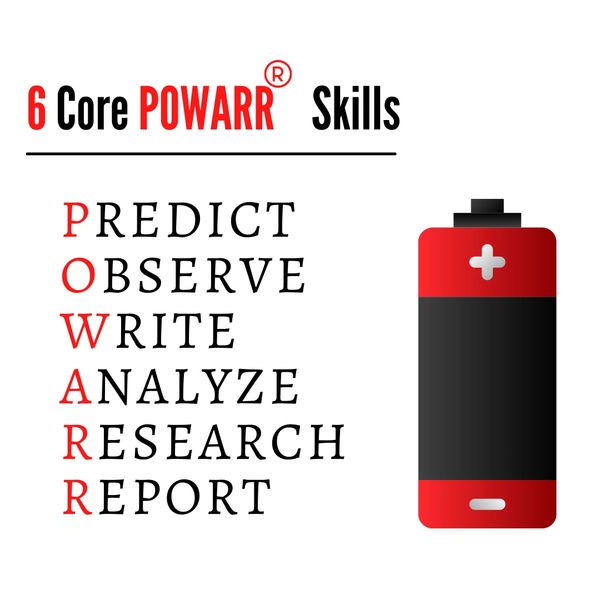 Dr. Blades created the POWARRful Teaching Strategies framework in 2018 to help students build their critical thinking and problem solving skills, based on recurring themes in her own teaching practices. From engaging in inquiry-based activities through to creating models to demonstrate learning, Dr. Blades observed that she was constantly teaching the same six core POWARR skills: Predict, Observe, Write, Analyze, Research, Report.
